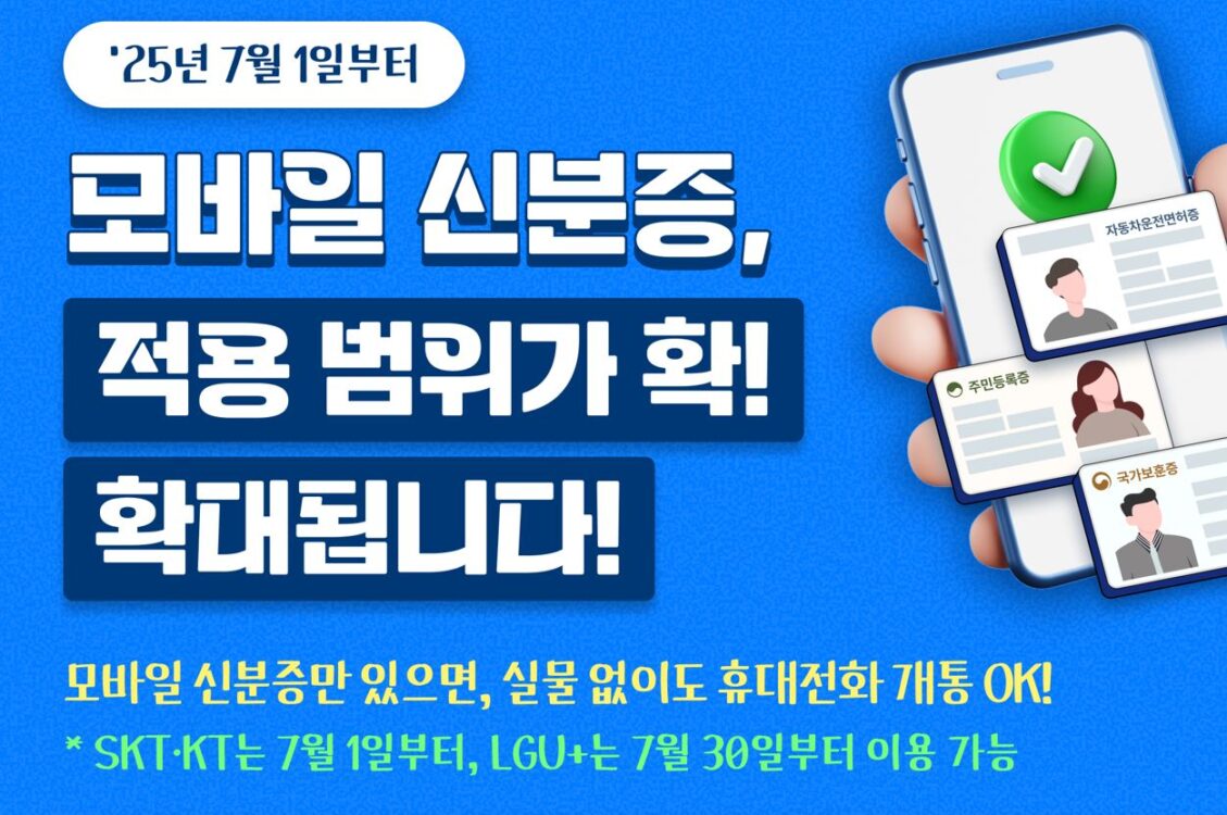 과학기술정보통신부는 7월부터 이동통신 3사(SKT·KT·LGU+) 유통망을 시작으로 휴대전화 개통을 위한 본인확인 절차에 이용되는 모바일 신분증의 적용 범위를 대폭 확대한다고 밝혔다.